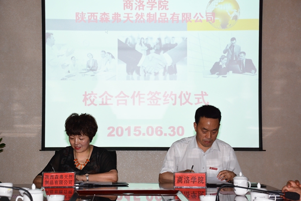 我校學(xué)校辦公室、發(fā)展規(guī)劃與交流合作處、科研處、教務(wù)處、學(xué)生處、校團(tuán)委、生物學(xué)院、經(jīng)管學(xué)院等部門負(fù)責(zé)人,商州區(qū)招商局、科技局、荊腰工業(yè)園區(qū)管委會以及森弗公司等相關(guān)單位負(fù)責(zé)人參加了協(xié)議簽字儀式。