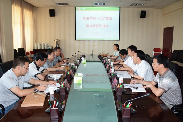 7月14日,由商洛市檢察院副檢察長王農(nóng)業(yè)、市依法治市辦公室副主任王治才一行四人組成的來我校檢查驗(yàn)收“六五”普法工作。校黨委副書記、“六五”普法工作領(lǐng)導(dǎo)小組副組長彭虎軍,學(xué)校辦公室、黨委宣傳部、思想政治理論課教學(xué)研究部負(fù)責(zé)人參加檢查驗(yàn)收匯報會。