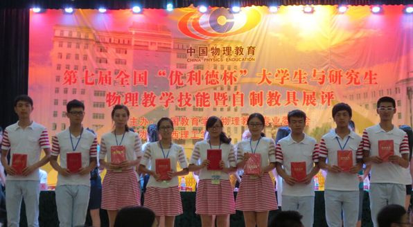 在為期一天半的展示活動中,來自全國各高校的661名選手(本科生583名,研究生78名)參加了教學技能展示、276項實驗參加了自制教具與設計實驗展示。我校學生韓生虎制作的《平拋運動演示儀》,李磊、魏建偉、李云靜等制作的《電與磁的相互作用演示儀》獲得自制教具展評類一等獎,并與華南師范大學、陜西師范大學等全國知名院校學生作品聯合被推薦進行展評;周新凱制作的《滑輪組合演示儀》獲得教具類二等獎;在物理教學技能展評活動中,我校學生宋丹獲得一等獎,孫亮獲得二等獎,劉馨、唐習哲、吳婷、劉玲玲獲得三等獎。