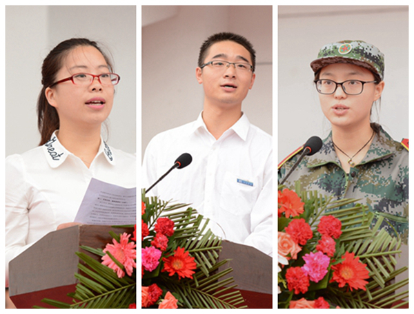 化學工程與現代材料學院教師曹寶月博士,2013級經濟與管理學院學生魚慶彬,2015級生物醫藥與食品工程學院學生田夢婷分別代表學校教師、在校生和新生作了發言。