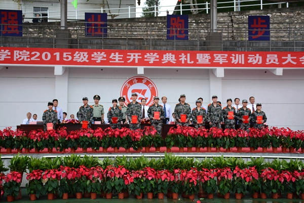 在校歌《正道直行做棟梁》激昂的歌聲中,大會宣告結束。2015級全體新生在教官的指導下開始了為期兩周的大學軍訓生活。