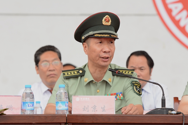 劉京生在大會上作了軍訓動員講話,他指出,在紀念中國人民抗日戰爭暨世界反法西斯戰爭勝利70周年之際,同學們走進大學接受軍事訓練。希望大家能夠遵守紀律、服從命令,端正態度、認真學習,刻苦訓練、珍惜軍訓機會,發揚不怕苦、不怕累的戰斗精神,克服困難、積極參訓、科學訓練,經受住入學的第一次考驗,堅決打贏入學訓練第一仗!