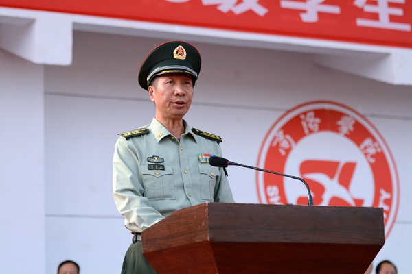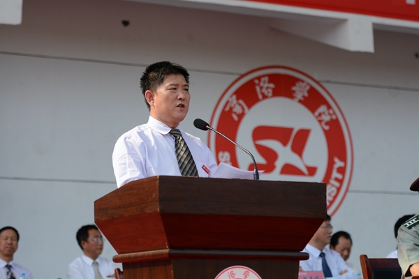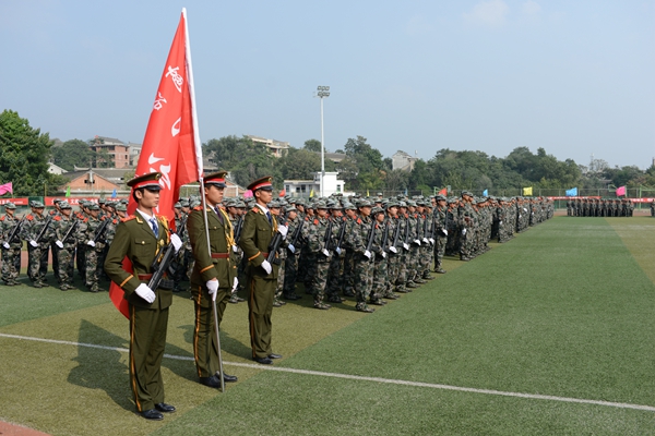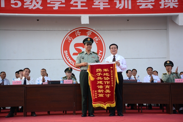 校黨委副書記彭虎軍代表學校向大力支持、幫助我校軍訓工作的解放軍西安政治學院、西安理工大學致謝,向承擔軍訓任務的全體教官致敬,向參加軍訓并取得良好成績的軍訓團體官兵表示親切的慰問和熱烈地祝賀。他在講話中指出,2015級全體同學以昂揚的斗志、刻苦的精神進行了隊列隊形訓練、整理內(nèi)務訓練、操槍訓練、行軍拉練等規(guī)定的訓練內(nèi)容,達到了軍訓的預期目標;大家在認真學習國防知識和軍事技能的同時,服從命令、聽從指揮、嚴守紀律、尊敬教官,養(yǎng)成了雷厲風行的良好作風,強化了集體榮譽感。緊張而又精彩的軍訓經(jīng)歷為同學們留下一筆珍貴的人生財富。彭虎軍要求全體新生在今后的學習生活中能夠保持和鞏固軍訓成果,學習和發(fā)揚人民解放軍的優(yōu)良傳統(tǒng)和作風,希望同學們珍惜時光,不做“低頭族”,要“抬頭看路,埋頭讀書”,努力把自己鍛煉成“理想信念堅定、本領(lǐng)過硬、勇于創(chuàng)新、艱苦奮斗、品德高尚”無愧于時代的英才,為實現(xiàn)中華民族偉大復興的中國夢做出自己應有的貢獻。