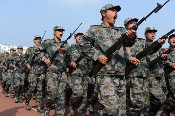 軍訓團團長劉京生總結(jié)了軍訓的經(jīng)驗和成果。他指出,軍訓作為大學的一堂重要的必修課,在同學們四年的大學生活甚至是漫長人生當中,是具有濃墨重彩的一筆,是人生旅程中一段美好而難忘的回憶。14天來在綠茵場上的摸爬滾打,造就了同學們意志如鋼、團結(jié)自律的堅強斗志,增強了大家國防意識與集體主義觀念,培養(yǎng)了團結(jié)互助的作風,提高了生活自理能力,培養(yǎng)思想和人格上的自立和獨立,取得了顯著成績。他希望全體新生在今后的學習生活中繼續(xù)保持軍人的優(yōu)良作風和過硬品質(zhì),做一名有紀律、有理想、有道德、有擔當?shù)暮细駥W生,用“博聞強志正道直行”的校訓勉勵自己。