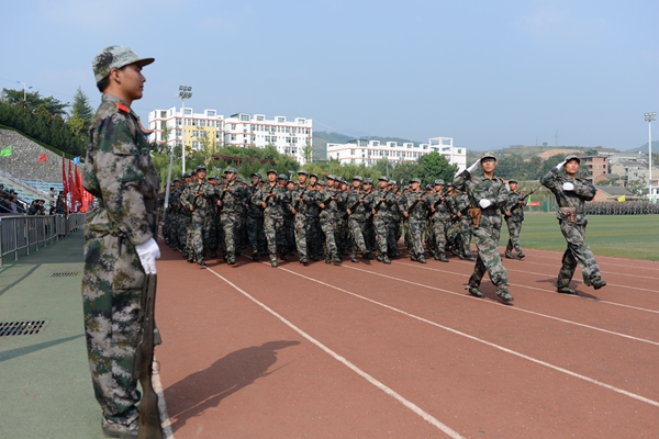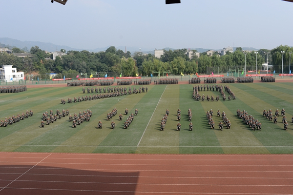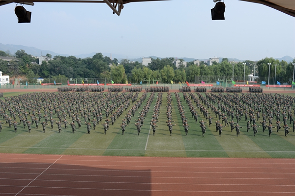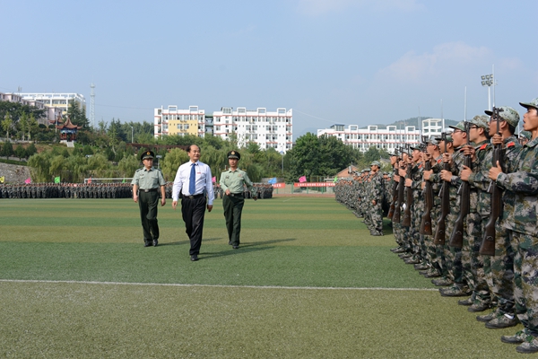 9月21日,我校隆重召開2015級學生軍訓會操暨總結(jié)表彰大會,全體2015級學生以分列式、刺殺操、花樣隊列和軍體拳表演等形式展示了他們半個月來的軍訓成果。校領(lǐng)導張景書、劉建林、王思懷、彭虎軍、范新會、劉寶盈。解放軍西安政治學院軍事系主任惠拉林大校,2015級學生軍訓團團長、解放軍西安政治學院劉京生大校觀看了會操表演并為受表彰的軍訓先進集體和個人頒獎。解放軍西安政治學院有關(guān)領(lǐng)導,我校各院(部)、各職能部門主要負責人,2015級學生輔導員參加了大會。大會由副校長范新會主持。