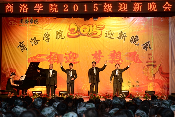 為迎接2015級新生的到來,展現我校學子風采,9月20日至22日,由校團委、學工部主辦的2015級迎新晚會在我校大學生活動中心隆重上演。校領導張景書、劉建林、王思懷、彭虎軍、范新會、劉寶盈,商洛市委常委、副市長武文罡、市政府副秘書長宋奇志、市委宣傳部副部長、文明辦主任李丹峰、商州區區長張國瑜,以及商丹園區黨工委、商洛市教育局、商洛移動公司、中國郵政商州分局、商洛電信商州分公司相關領導與我校2400余名師生一同觀看了晚會。