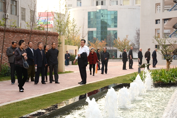 在魏書堂的陪同下,離退休老同志代表乘車前往丹江校區,參觀了我校辦學成就展廳、陜西省尾礦資源綜合利用重點實驗室、秦嶺植物標本陳列室、商洛紅色文化資料館、商洛文化暨賈平凹研究中心、莘子園、校園觀景臺等處。
