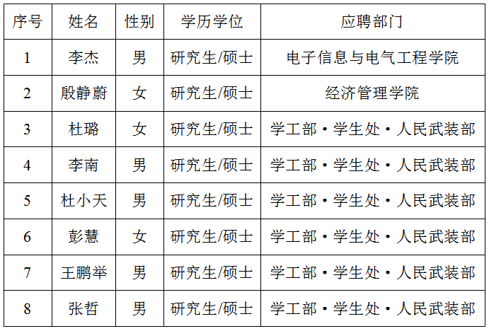 商洛學院2020年第九批擬招聘人員名單(8人)
