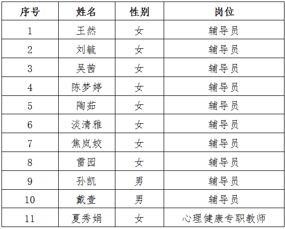 商洛學(xué)院2021年輔導(dǎo)員及心理健康專(zhuān)職教師擬錄用人員名單