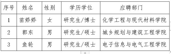 商洛學院2019年第四批招聘人員名單(3人)
