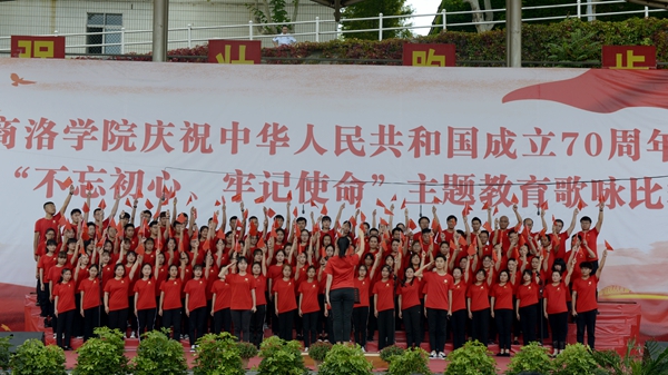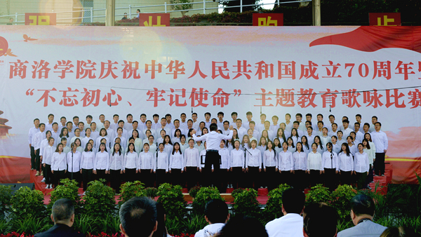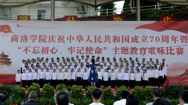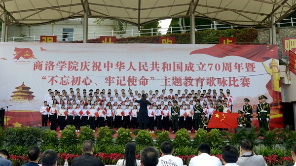 “憶往昔崢嶸歲月,抒今朝愛國情懷。”9月25日下午,我校慶祝中華人民共和國成立70周年暨“不忘初心、牢記使命”主題教育歌詠比賽在校體育場舉辦。校領(lǐng)導(dǎo)龍治剛、范新會、彭虎軍、劉寶盈、劉勇出席活動并與師生同臺竟唱。全體教職工和2019級學(xué)生4000余人觀看了比賽。11支代表隊用優(yōu)美的旋律和嘹亮的歌聲謳歌中國共產(chǎn)黨帶領(lǐng)全國人民走過的波瀾壯闊的70年光輝歷程,表達對祖國母親的熱愛與祝福。