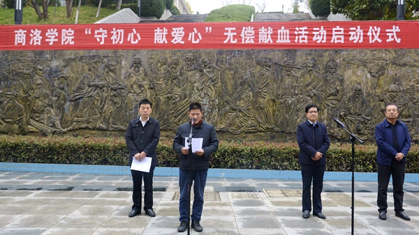 為深化“不忘初心、牢記使命”主題教育,號召廣大師生以實際行動助力公益事業,11月6日到8日,我校與商洛市中心血站聯合舉辦“守初心 獻愛心”無償獻血活動。校長范新會,商洛市中心血站站長袁觀成出席活動啟動儀式并講話,校黨委副書記彭虎軍主持啟動儀式。市中心血站副站長張延倉,我校各職能部門負責人、各二級學院黨政負責人、師生代表,中心血站工作人員參加活動啟動儀式。
