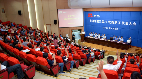 決議指出,《2019年學校工作報告》主題鮮明、鼓舞人心,全面客觀地回顧總結了學校2019年的主要工作,深刻分析了學校事業發展所面臨的矛盾以及解決的決心。對2020年的工作部署思路明晰、重點突出、任務明確,符合學校發展實際,體現了全體教職員工的意志和愿望,起到了統一思想、凝聚人心的作用;《2019年學校財務工作報告》條理清楚、數據詳實、重點明確,分析客觀準確,安排科學合理,符合學校工作實際;《商洛學院教代會提案工作報告》對三屆六次教代會提案辦理情況作了詳細明確的答復。大會同意《丹江校區通村道路改移方案》,希望相關部門加快實施。大會號召,全校教職工圍繞學校發展的新形勢和新要求,不忘初心、牢記使命,適應新時代、迎接新挑戰、搶抓新機遇,以更加飽滿的熱情、更加拼搏的精神,為加快一流學院建設努力奮斗。