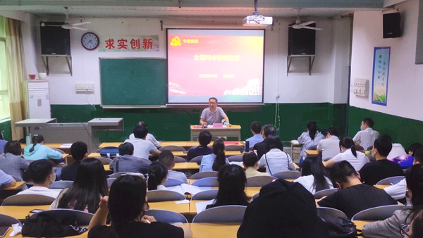 6月17日,校黨委書記龍治剛參加生物學院黨總支主題黨日活動,為師生作全國兩會精神宣講。生物學院全體教工黨員、民主黨派和黨外知識分子代表、畢業(yè)班學生黨員參加了宣講會。