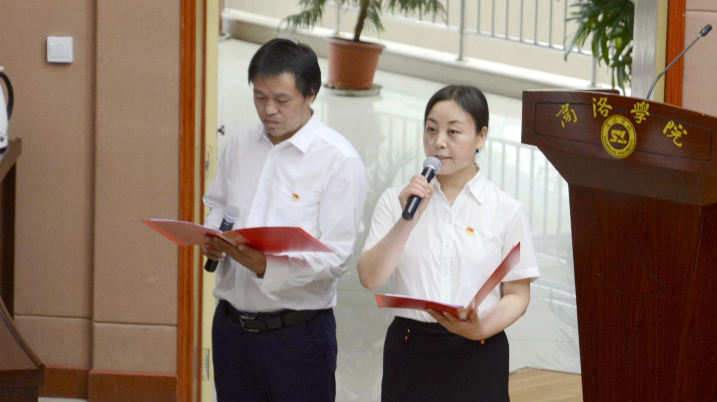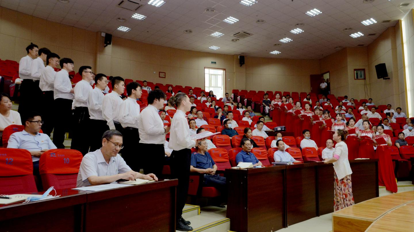 大會還穿插了文藝表演,現場氣氛熱烈、激情飛揚,師生黨員們唱歡歌、奏樂器、誦詩篇,用飽滿的熱情紀念黨的99歲生日,抒發熱愛黨、熱愛祖國的濃濃情懷?!拔疫~著那堅定的腳步,走在你身后;為你捧出火紅的青春,一路去追求;為你拋灑滾燙的熱血,奉獻我所有。”《把一切獻給黨》的現場演唱唱出了在場師生黨員的愛黨心聲,聲情并茂的詩歌朗誦《黨啊,我們為您歌唱》讓人心潮澎湃,笛子獨奏《收割》、美聲獨唱《山尖尖托起太陽升》、合唱《我宣誓》《我和我的祖國》,現場高潮迭起、掌聲陣陣。