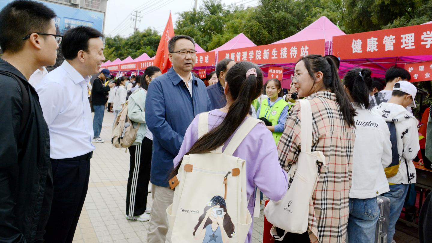在新生報到點,校領導詳細了解各學院報到人數、住宿安排及各項工作開展情況,對堅守工作崗位的師生表示感謝,要求相關職能部門和各二級學院要精心組織、密切協作,樹牢服務意識,想學生所想,急學生所需,熱心、細心、貼心做好各項工作,確保每名新生都能順利地報到入學。校領導還與新生及家長進行了交流,仔細詢問新生的籍貫、專業及入學感受、入校需求,勉勵新同學早日適應大學生活,在新的環境里全方面提升自己,刻苦學習,勤于思考,成為社會的棟梁之才。看見在迎新一線忙碌的志愿者們,校領導對他們的志愿精神給予了高度贊賞。