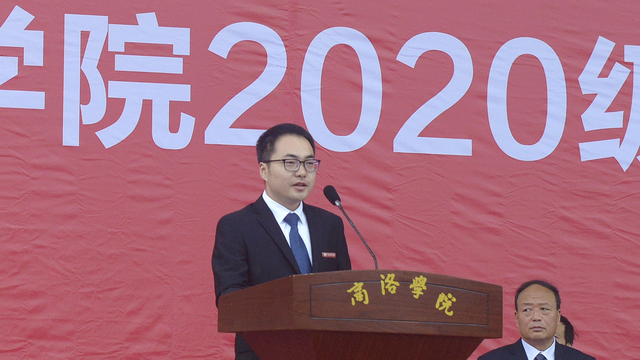 2020級新生代表、經管學院文化產業管理2001班郭樂樂在發言中分享了入校的激動與喜悅,感謝商洛學院大家庭的溫暖關懷,表示將迎接多元挑戰,凝練堅韌意志,做不負韶華的時代追夢人。