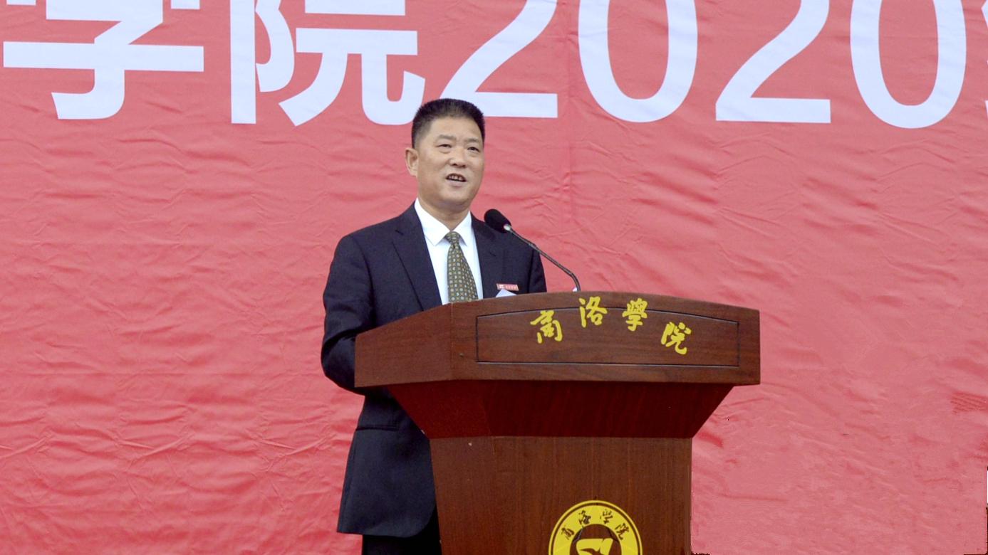 金秋九月,秦嶺蒼莽,丹水蕩漾。9月28日上午,我校2020級學生開學典禮暨軍訓動員大會在學校體育場隆重舉行。校黨委書記龍治剛、校長范新會、黨委副書記劉勇,黨委副書記、紀委書記、監察專員曹淵、副校長劉寶盈、副校長王新軍,商洛軍分區動員處處長、商洛市人民政府征兵辦公室副主任周武強上校,武警商洛支隊參謀長、2020級新生軍訓團團長耿小民中校,化學92屆校友、北京校友分會會長、北京龍門育才學校校長馬良竹出席大會。二級學院(部)黨政主要負責人及有關職能部門主要負責人,2020級全體新生參加大會。大會由劉勇主持。