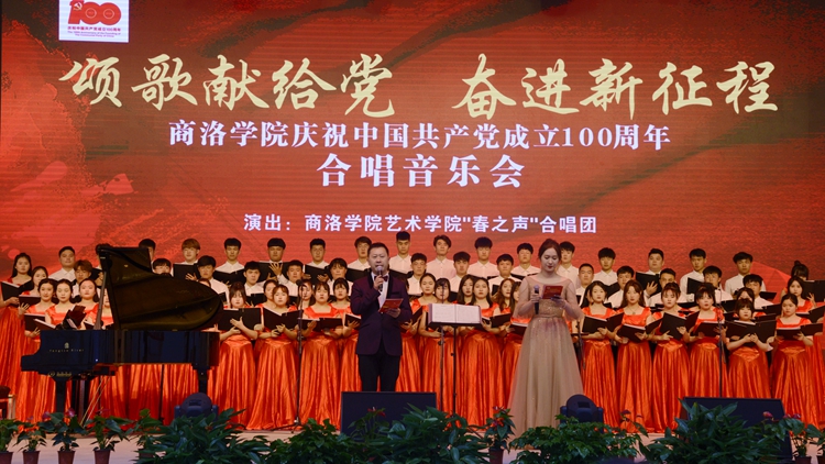 為隆重慶祝中國共產黨成立100周年,謳歌黨的百年光輝歷程和豐偉功績,5月25日,我校“頌歌獻給黨 奮進新征程”慶祝中國共產黨成立100周年合唱音樂會在丹江校區隆重舉辦。藝術學院“春之聲”合唱團用美妙的音符和動聽的旋律為師生呈現了一場激情磅礴的紅色視聽盛宴。校領導龍治剛、范新會、彭虎軍、王新軍、郭瑾,全體處級干部及師生代表500余人觀看了音樂會。