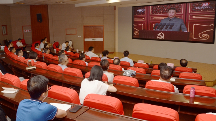 我校高度重視、精心部署,提前下發(fā)通知,組織師生通過在線方式集體收看大會實況。學校在圖書館一樓報告廳設主會場,省委黨史學習教育第十三巡回指導組組長、商洛市人大常委會一級巡視員劉淑慧,全體校領導、黨委委員、機關副處級以上干部共同收看了大會直播,認真聆聽習近平總書記的重要講話。各級黨總支、直屬黨支部、團委設立20個分會場,組織廣大師生收看大會直播。