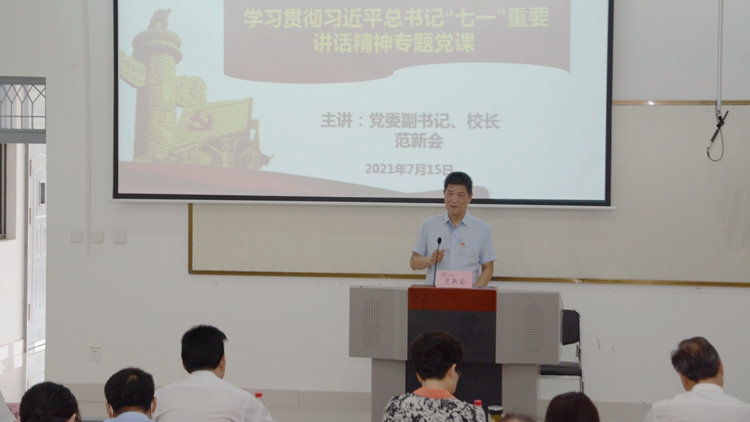 范新會與大家分享了自己學(xué)習(xí)習(xí)近平總書記“七一”重要講話的體會和感悟,從“全面把握習(xí)近平總書記“七一”重要講話的豐富內(nèi)涵,深入學(xué)習(xí)習(xí)近平總書記“七一”重要講話提出的新思想、新觀點(diǎn)、新要求,結(jié)合學(xué)校實(shí)際學(xué)習(xí)好、貫徹好習(xí)近平總書記“七一”重要講話精神”三個方面,系統(tǒng)分析了習(xí)近平總書記“七一”重要講話的整體偉略和框架結(jié)構(gòu),深刻闡述了習(xí)近平總書記“七一”重要講話的重大意義、主要內(nèi)容和豐富內(nèi)涵,重點(diǎn)解讀了如何學(xué)習(xí)領(lǐng)會全面建成小康社會的歷史性成就,實(shí)現(xiàn)中華民族偉大復(fù)興這一貫穿中國共產(chǎn)黨百年奮斗的主題,中國共產(chǎn)黨百年來創(chuàng)造的“四個偉大成就”和向世界作出的“四個莊嚴(yán)宣告”,偉大建黨精神和“九個必須”的寶貴經(jīng)驗(yàn)。同時圍繞講話中提出的一系列新思想新觀點(diǎn)新要求進(jìn)行了系統(tǒng)講解。