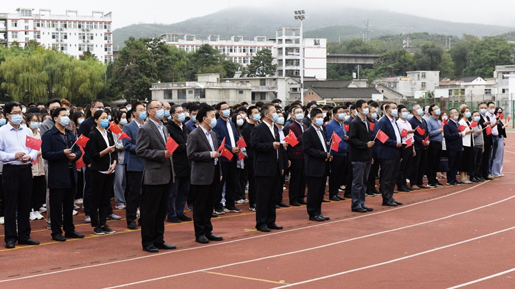 旗幟飄揚引領方向,國歌響亮催人奮進。為慶祝中華人民共和國成立72周年,9月30日上午,我校在北新街校區體育場隆重舉行“聽黨話跟黨走做新時代合格新青年”主題升國旗儀式。黨委書記張志昌、校長范新會,黨委副書記彭虎軍、劉勇,副校長劉寶盈、王新軍,黨委委員李超、楊存典出席升國旗儀式。各職能部門負責人、各二級院(部)黨政主要負責人、經管學院全體師生參加升國旗活動。