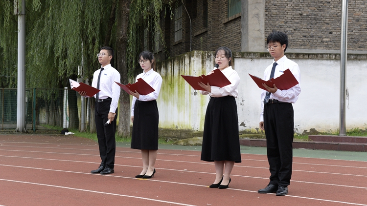(校領導和全體師生齊唱《歌唱祖國》)