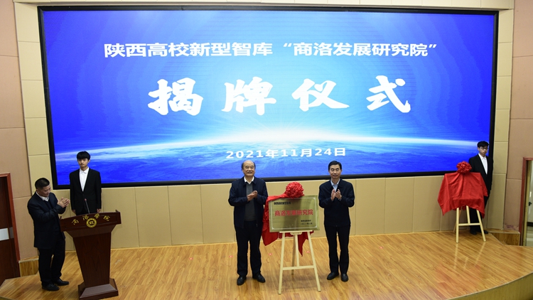 在與會領導的共同見證下,高嶺和權雅寧分別代表陜西省教育廳和商洛市人民政府簽署省市共建商洛學院協議。張軍林和劉建林共同為我校兩個新型科研平臺——陜西高校新型智庫“商洛發展研究院”和“秦嶺康養大數據陜西高校工程研究中心”揭牌。