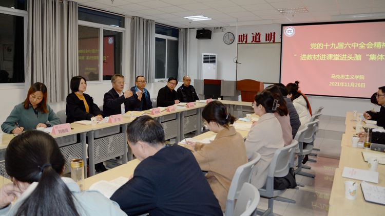 為深入學(xué)習(xí)黨的十九屆六中全會(huì)精神,推進(jìn)全會(huì)精神進(jìn)教材進(jìn)課堂進(jìn)頭腦,11月26日下午,我校召開黨的十九屆六中全會(huì)精神“三進(jìn)”集體備課會(huì)。校黨委書記張志昌、副校長劉寶盈出席會(huì)議,教務(wù)處、中國特色社會(huì)主義理論體系研究中心負(fù)責(zé)人,馬克思主義學(xué)院相關(guān)負(fù)責(zé)人及全體教師參加會(huì)議。