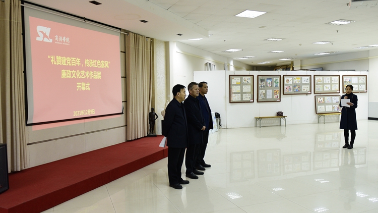 12月9日上午,由校紀(jì)委主辦、藝術(shù)學(xué)院承辦的“禮贊建黨百年,傳承紅色家風(fēng)”廉政文化藝術(shù)作品展在北新街校區(qū)圖書館五樓藝術(shù)展廳開幕。校黨委書記張志昌,黨委副書記彭虎軍,副校長王新軍、劉寶盈出席開幕式并參觀作品展。各職能部門負(fù)責(zé)人、二級(jí)學(xué)院(部)黨政負(fù)責(zé)人以及藝術(shù)學(xué)院師生代表參加了開幕式。開幕式由紀(jì)委副書記田小莉主持。