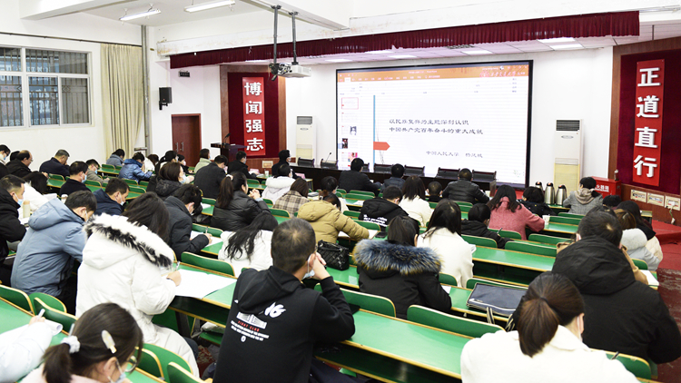 為深入學習貫徹黨的十九屆六中全會精神,12月10日上午,省委教育工委舉辦形勢與政策高端報告會,邀請中國人民大學中共黨史黨建研究院執行院長楊鳳城教授為全省師生作專題報告。我校組織部、宣傳部、統戰部、學工部、團委及馬克思主義學院相關負責人,全體思政課教師、輔導員和學生代表通過在線直播集中聽取報告。更多黨員干部和師生通過手機收看直播的方式參加報告會,并在線上線下展開熱烈討論。
