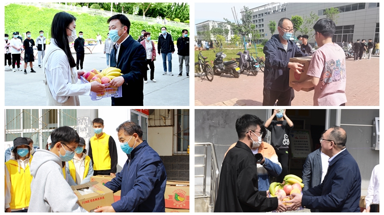 為確保同學(xué)們度過一個(gè)溫馨、和諧、快樂的五一假期,學(xué)校精心準(zhǔn)備了水果禮包。5月1日上午,校領(lǐng)導(dǎo)張志昌、彭虎軍、劉寶盈、王新軍、郭瑾分別深入北新街校區(qū)和丹江校區(qū),為萬余名在校學(xué)生送去蘋果、香蕉,以及節(jié)日的祝福。