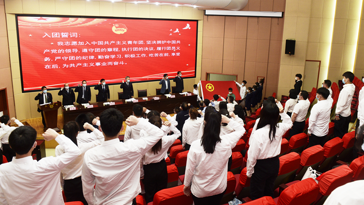 在校領(lǐng)導(dǎo)的帶領(lǐng)下,全體與會(huì)人員重溫入團(tuán)誓詞。廣大團(tuán)員青年用錚錚誓言表達(dá)出聽黨號令、跟黨奮斗,不忘初心擔(dān)使命,踴躍投身疫情防控工作和新時(shí)代中國特色社會(huì)主義建設(shè)的堅(jiān)強(qiáng)意志。