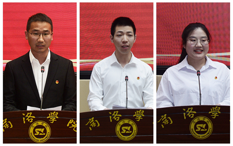 獲獎(jiǎng)集體和個(gè)人代表,建工學(xué)院團(tuán)總支書記杜江濤、生物學(xué)院制藥工程專業(yè)1902班學(xué)生李丹、數(shù)計(jì)學(xué)院計(jì)算機(jī)科學(xué)與技術(shù)專業(yè)2001班學(xué)生葉輔軍分別做了表態(tài)發(fā)言。他們代表全體團(tuán)學(xué)工作人員和青年學(xué)生表示,將勇于擔(dān)當(dāng)青年責(zé)任,努力成長成才,助力學(xué)校建設(shè)發(fā)展。