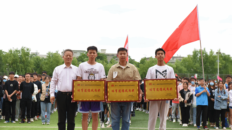在期待的眼光和熱烈的掌聲中,張志昌為獲得體育道德風尚獎的學院頒獎,范新會為團體總分前三名獲獎學院頒獎,彭虎軍、劉勇分別為女子團體前三名獲獎學院和男子團體前三名獲獎學院頒獎。