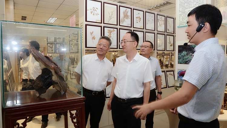 趙鵬一行先后前往我校秦創原(商洛)創新促進中心孵化器、尾礦資源綜合利用重點實驗室、發展成就展廳和秦嶺植物標本陳列室,實地調研了解學校創新成果轉化、科研平臺建設、發展成就、人才資源匯聚等情況。