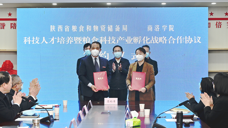為進(jìn)一步推動陜西省糧食產(chǎn)能提升、生產(chǎn)結(jié)構(gòu)優(yōu)化,加快推進(jìn)校地合作共建涉糧科技人才培養(yǎng)體系,促進(jìn)糧食產(chǎn)業(yè)高新技術(shù)成果轉(zhuǎn)化,12月14日上午,陜西省糧食和物資儲備局與我校召開校地共建糧食工程專業(yè)座談會。雙方簽訂了《科技人才培養(yǎng)及糧食科技產(chǎn)業(yè)孵化戰(zhàn)略合作協(xié)議》,為“陜西秦創(chuàng)原(商洛)糧食科技產(chǎn)業(yè)孵化中心”“陜西省糧食和物資儲備局商洛學(xué)院培訓(xùn)基地”“商洛糧食行業(yè)協(xié)會”掛牌。