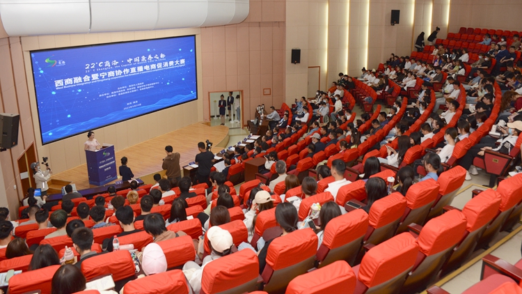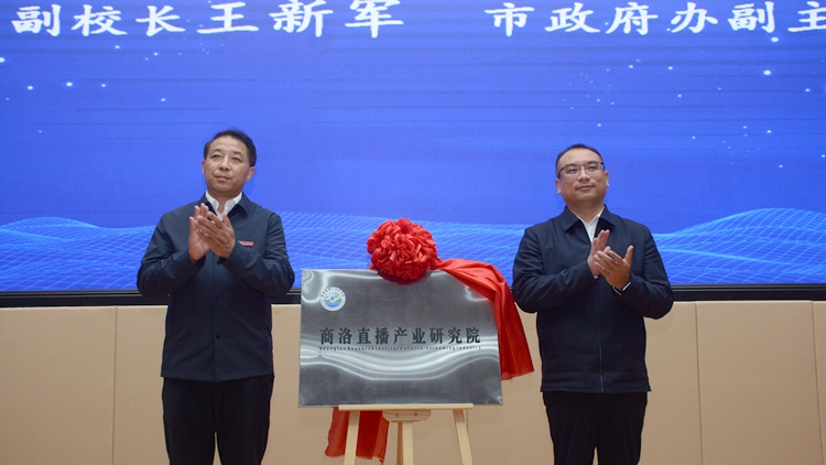 5月24日下午,22℃商洛·中國康養之都西商融合暨寧商協作直播電商促消費大賽啟動儀式在我校舉行。我校商洛直播產業研究院成立及授牌儀式同時舉辦。校領導張志昌、范新會、劉寶盈、王新軍,南京市商務局二級巡視員李大軍、西安市商務局四級調研員劉峰出席活動。