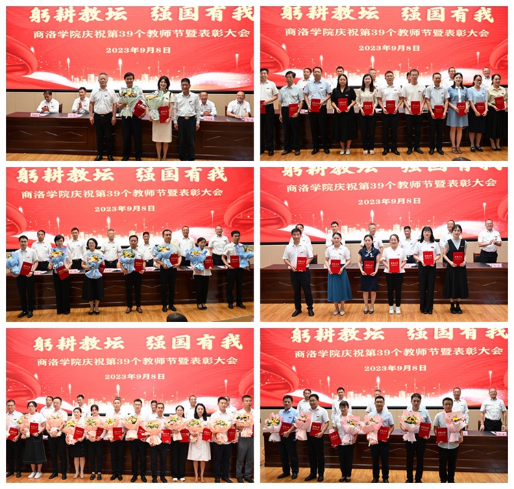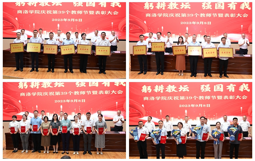 在熱烈的掌聲中,大會對我校榮獲2023年陜西省教書育人楷模、第十三屆陜西普通本科高等學校教學名師、商洛學院首屆黃大年式教師團隊、2022年度全省教育系統先進個人、學校目標責任考核優秀單位、2023年度先進集體、優秀教師、優秀教育工作者、我最喜愛的老師以及在教學、科研和學生工作中取得突出業績的教師進行了表彰。
