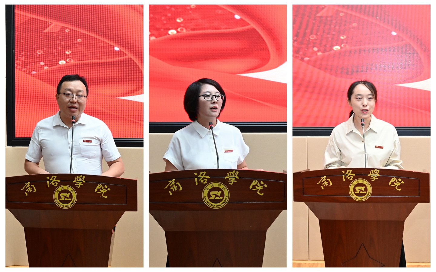 2023年先進集體單位代表袁訓鋒、科研工作突出業績代表喬成芳、教學工作突出業績代表房琳分別作了發言。他們一致表示,今后將始終以習近平新時代中國特色社會主義思想為指導,堅定“躬耕教壇,強國有我”的職業信念,踐行“四有”好老師標準,將扎實的知識功底、過硬的教學能力、勤勉的教學態度、科學的教學方法作為自身的基本素質,不斷提升教育能力、科研能力、社會服務能力,為把商洛學院建設成為省內、國內一流應用型本科院校而努力奮斗。