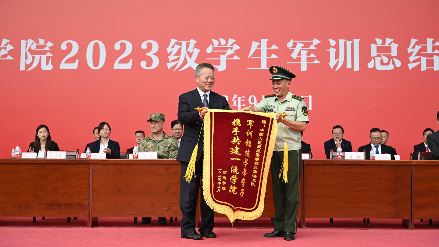 9月14日上午,我校舉行2023級(jí)學(xué)生軍訓(xùn)總結(jié)表彰大會(huì),檢閱2023級(jí)學(xué)生軍訓(xùn)成果,表彰軍訓(xùn)中涌現(xiàn)出的先進(jìn)集體與個(gè)人。校黨委書(shū)記張志昌向中國(guó)人民武裝警察部隊(duì)商洛支隊(duì)中校副支隊(duì)長(zhǎng)、商洛學(xué)院2023級(jí)學(xué)生軍訓(xùn)團(tuán)團(tuán)長(zhǎng)徐兵贈(zèng)送了“軍訓(xùn)錘煉莘莘學(xué)子攜手共建一流學(xué)院”的錦旗。黨委副書(shū)記劉勇講話,副校長(zhǎng)劉寶盈主持大會(huì)。商州區(qū)人民武裝部中校副部長(zhǎng)淮鋒出席大會(huì)。各二級(jí)院(部)黨政負(fù)責(zé)人,有關(guān)職能部門(mén)負(fù)責(zé)人,全體2023級(jí)參訓(xùn)學(xué)生及輔導(dǎo)員參加大會(huì)。