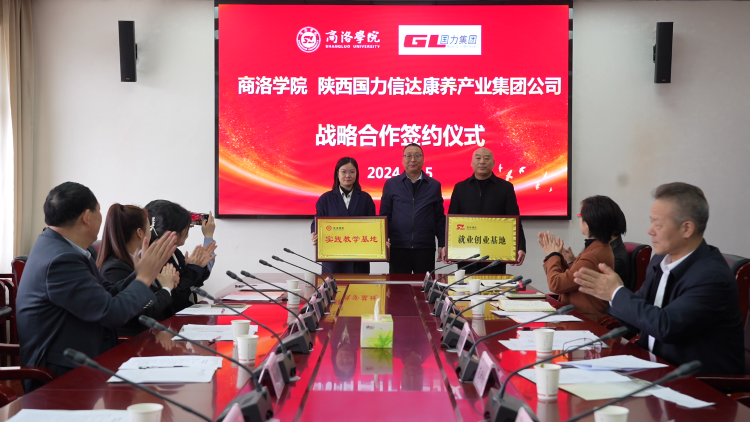 在其他與會(huì)人員的見證下,王新軍與林杰分別代表校企雙方簽訂《陜西國力信達(dá)康養(yǎng)產(chǎn)業(yè)集團(tuán)有限公司商洛學(xué)院戰(zhàn)略合作框架協(xié)議》。劉寶盈代表學(xué)校為國力集團(tuán)授《商洛學(xué)院就業(yè)創(chuàng)業(yè)基地》《商洛學(xué)院實(shí)踐教學(xué)基地》牌,朱啟有、李萌分別代表企業(yè)接牌。