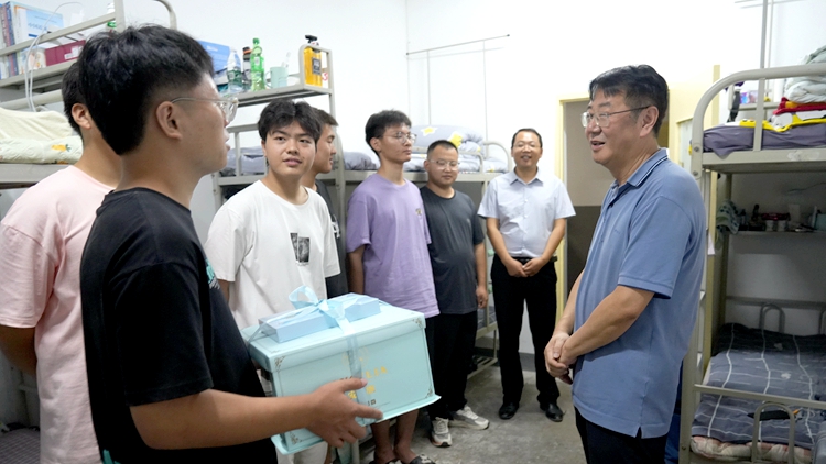 8月29日,校黨委書記張志昌,校長權雅寧,黨委副書記王浩,副校長王新軍、郭瑾分別深入北新街校區、丹江校區學生宿舍看望慰問2024級新生,并為當天過生日的孟欣雨等9名新生送去生日蛋糕。