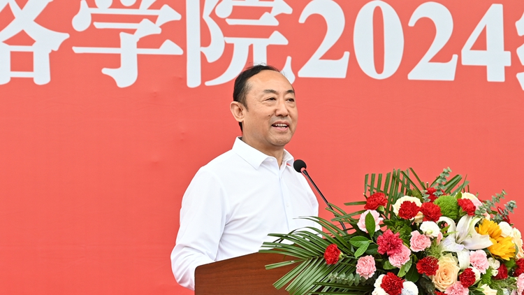 權雅寧代表學校熱烈歡迎2024級新生的到來,向承擔本次軍訓任務的武警商洛支隊全體官兵表示崇高的敬意。她簡要回顧了我校建校48年來的發展歷程和近年來學校取得的顯著成績,并以《青春奮斗正當時 不負韶華不負心》為題致辭,向2024級新生講授“開學第一課”。權雅寧寄語2024級新生,一是要做“心中有光”的青年,用心中的光照亮生命。希望同學們成為點燈者、照亮者、撐傘人,在成長過程中護住自己的心氣、心力、心光,用光明之眼看清自己的路、看清國家和時代的方向,用光明之心照亮未來變化紛繁的路。二是要做“腳下有路”的青年,用腳下的路丈量世界。希望同學們心中有星辰大海,手中有百萬雄兵,兼有利他、利己、利物、利事的心量,爭做大才、大智之人。三是要做“行為有戒”的青年,用行為之戒磨礪品行。要對自己的每一個行為有所要求,在成為有志、有識、有恒的青年路上,用每一寸光陰積累點滴進步。