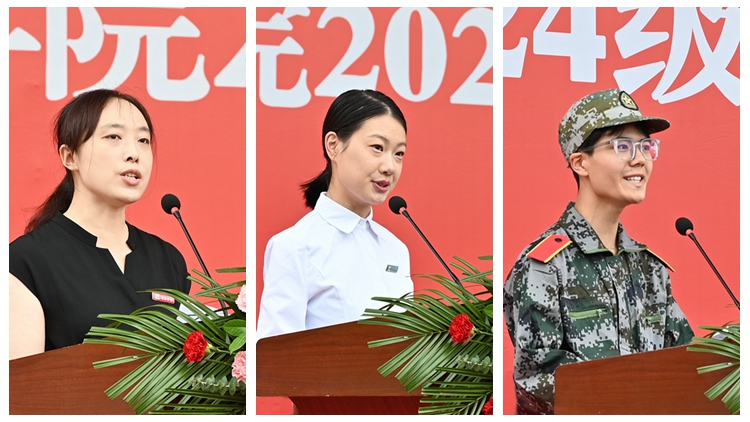 人文學院漢語言文學專業譚銀鈴、健康管理學院護理學專業李易衡分別代表在校生和2024級新生發言。