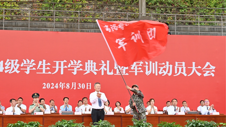 8月30日上午,商洛學院2024級新生開學典禮暨軍訓動員大會在北新街校區田徑場隆重舉行。校黨委書記張志昌出席大會并向2024級新生軍訓團授旗。校長、黨委副書記權雅寧出席大會并講話。大會由副校長劉寶盈主持。