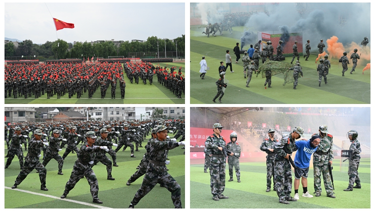 大會(huì)在莊嚴(yán)的升旗儀式中拉開帷幕。參訓(xùn)新生進(jìn)行了花樣隊(duì)列、五步拳、匕首操、擒敵拳、反恐演練等5個(gè)匯報(bào)科目展示。花樣隊(duì)列的同學(xué)們意氣風(fēng)發(fā),以整齊的步伐和獨(dú)特的隊(duì)形變化,展示著商洛學(xué)院的創(chuàng)新精神和團(tuán)隊(duì)合作能力。五步拳陣和匕首操表演整齊利落,英姿颯爽。擒敵拳動(dòng)作連貫,氣勢(shì)如虹、拳拳生風(fēng)。反恐演練模擬了防范和打擊恐怖主義,解救人質(zhì)的場(chǎng)景。同學(xué)們配合默契,訓(xùn)練有素,以精湛的技巧和標(biāo)準(zhǔn)的戰(zhàn)術(shù)動(dòng)作圓滿完成訓(xùn)練科目匯報(bào)展示。