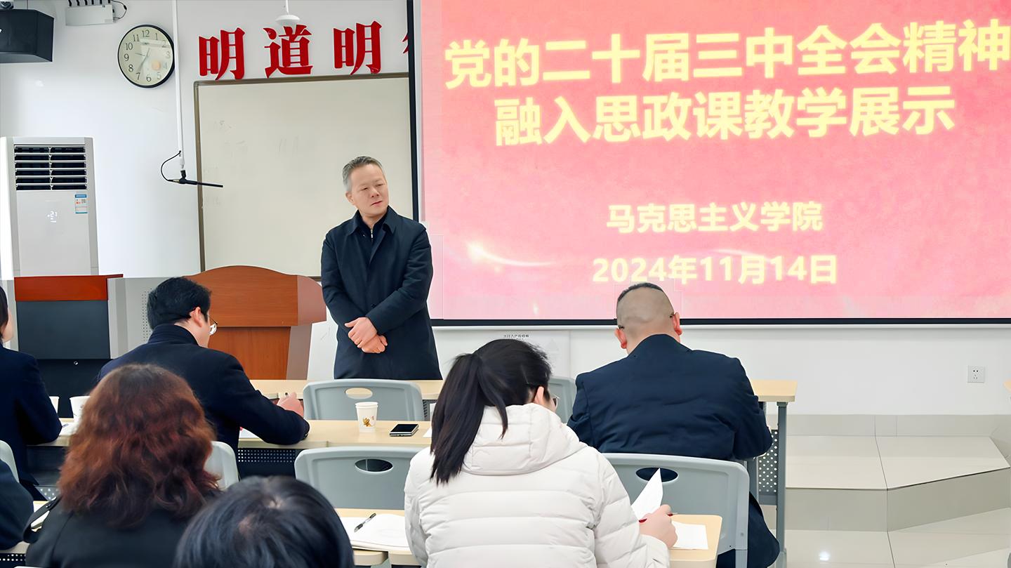 為深入貫徹落實黨的二十屆三中全會精神,持續(xù)推進全會精神進課堂、進教材、進師生頭腦,不斷提升思政課教學水平,11月14日上午,商洛學院黨委書記張志昌到馬克思主義學院調研思政課建設,現(xiàn)場觀摩指導“黨的二十屆三中全會精神融入思政課”教學展示活動。