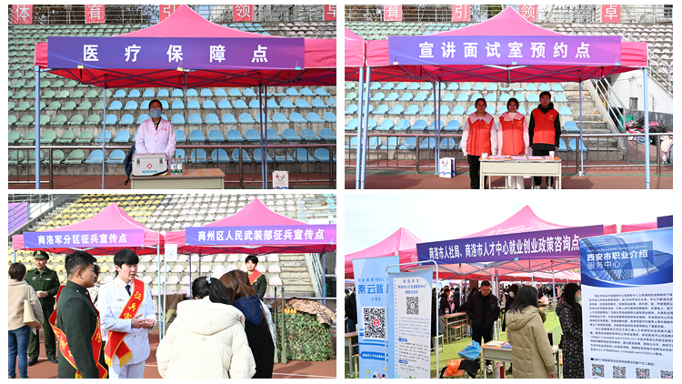 商洛軍分區(qū)副司令員陸樂樂、商州區(qū)人武部上校政委高運(yùn)鋒、商洛市人社局四級(jí)調(diào)研員張利民、商洛市就業(yè)管理局副局長(zhǎng)李榮軍、商洛職業(yè)技術(shù)學(xué)院學(xué)生處處長(zhǎng)張靜、商洛市人才中心副主任董毅、西安市職介中心公共就業(yè)服務(wù)部副部長(zhǎng)鄧方園等參加了招聘會(huì)有關(guān)活動(dòng)。