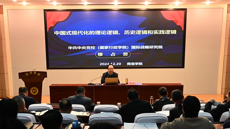 12月20日,商洛學(xué)院召開黨委理論學(xué)習(xí)中心組集體學(xué)習(xí)(擴大)會議,專題學(xué)習(xí)習(xí)近平總書記對新時代馬克思主義理論研究和建設(shè)工程作出的重要指示精神,邀請中共中央黨校(國家行政學(xué)院)國際戰(zhàn)略研究院教學(xué)秘書、研究生導(dǎo)師穆占勞教授作輔導(dǎo)報告。會議由校黨委副書記、校長權(quán)雅寧主持。校黨委理論學(xué)習(xí)中心組成員,各二級學(xué)院黨委、黨總支、直屬黨支部負責(zé)人,各二級學(xué)院院長、職能部門負責(zé)人及思政課教師代表參加學(xué)習(xí)。